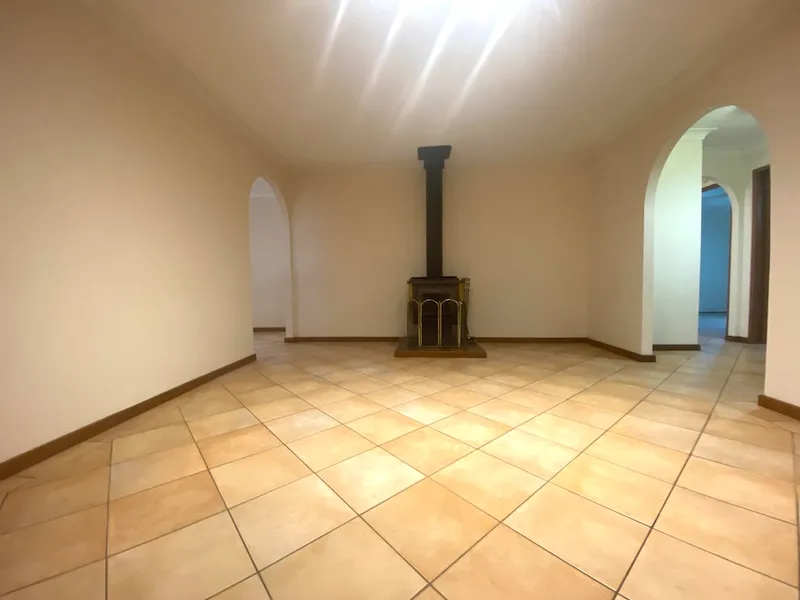 • Combined dining and living area with a split system air conditioning unit and a gas heater