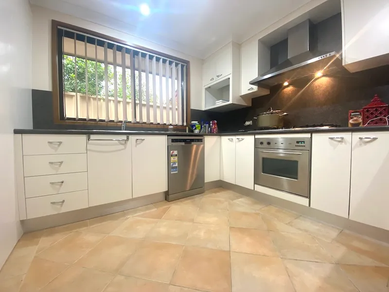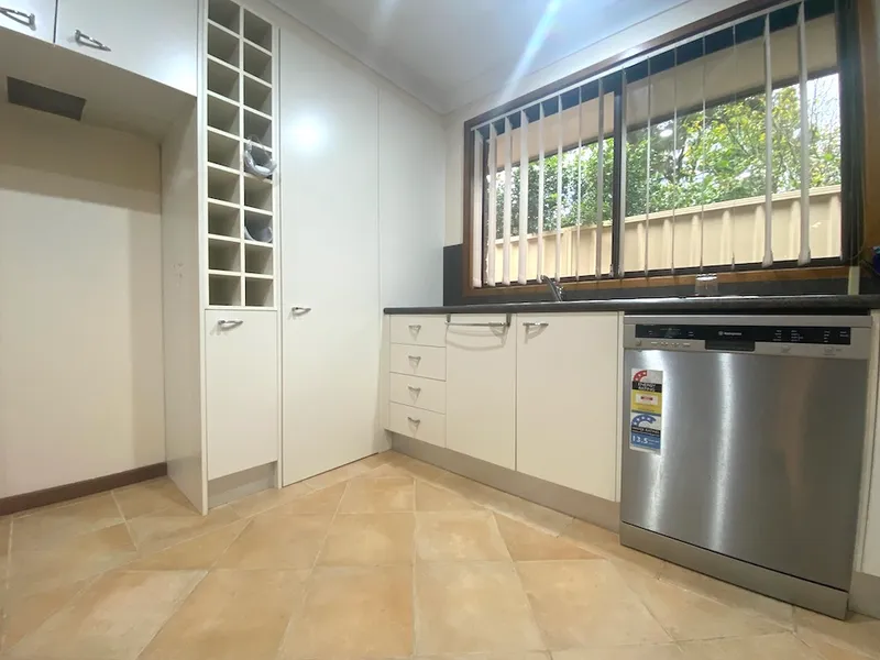 • The kitchen features ample storage space, built in wine storage, gas cooking stove top and a dishwasher