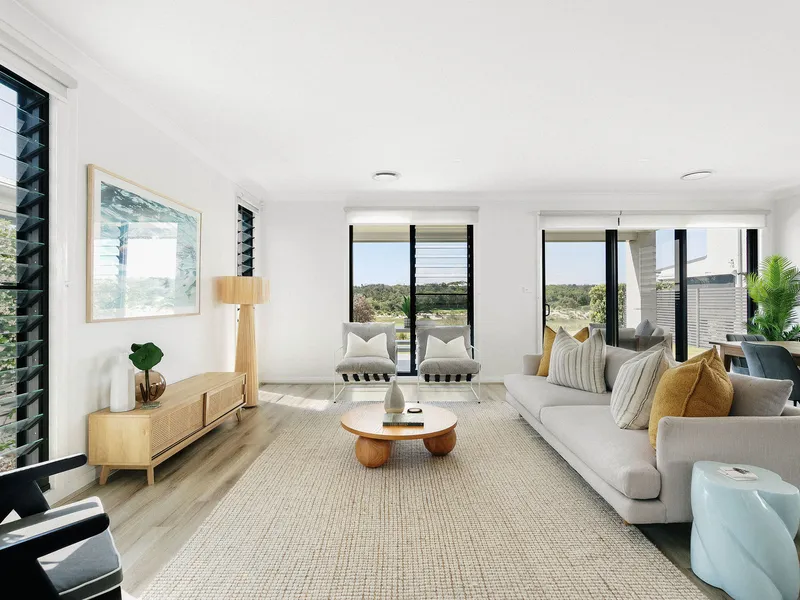 Claiming a commanding position over looking the golf course at the Magenta Shores Resort, this designer residence puts stylish refinement front and centre of the holiday experience. Spanning two flawless levels with a due north aspect, the contemporary design is focused on an effortless lifestyle for occupants and their guests; the resort offers a fabulous choice of pools and day spa, two tennis courts, gym and a short stroll to the clubhouse and casual dining spots. This is a beautifully finished home with multiple living zones across the open plan layout; in addition to the main living areas, it includes a spacious media room, home office and expansive north facing terraces on both levels. There's also the opportunity to join the Magenta Shores Golf Club, with its championship 18-hole course and its stunning oceanfront setting.