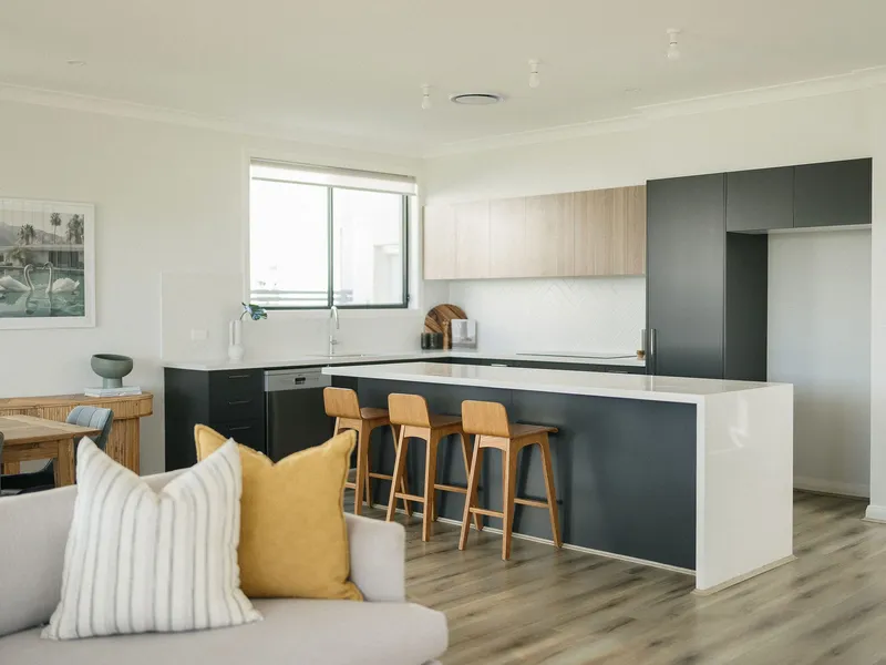 • Designer kitchen fitted with stone benchtops and abundant storage