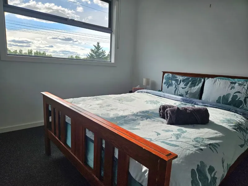 Upstairs the two bedrooms, furnished with double beds and bedding, bedside table and lamp, both offer comfort with split system colling/heating, built in robes for storage and ensuite bathrooms.