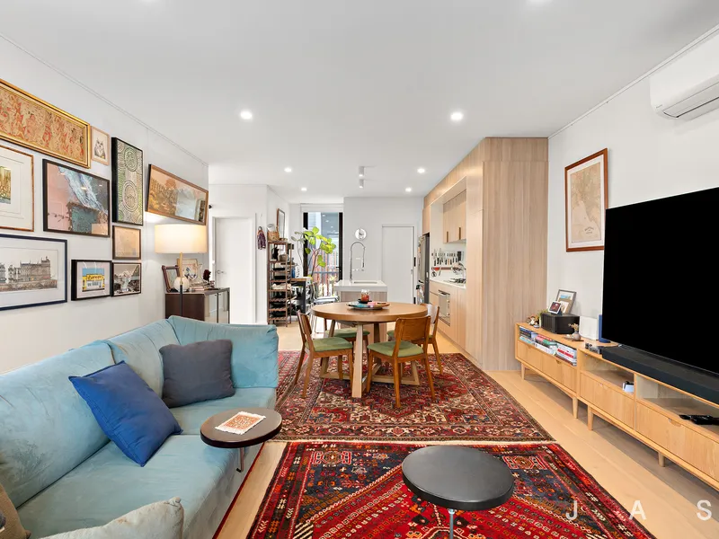 The large light filled living/dining area is furnished with lounge, coffee table, TV and entertainment unit, plus dining table with 2 chairs, with an adjacent galley style kitchen complete with fridge/freezer, microwave, toaster and kettle, crockery and cutlery, ready to cook up a storm!