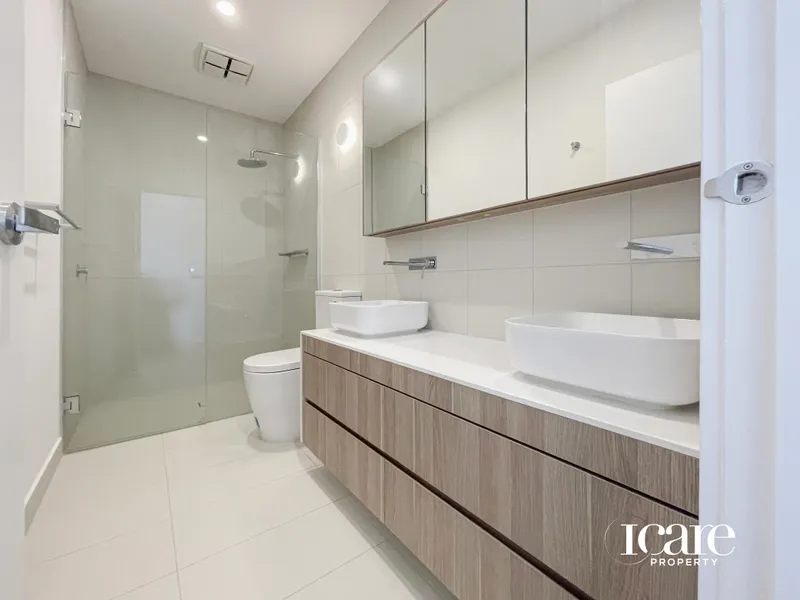 - Stylish bathroom with twin sink, shower and bathtub options