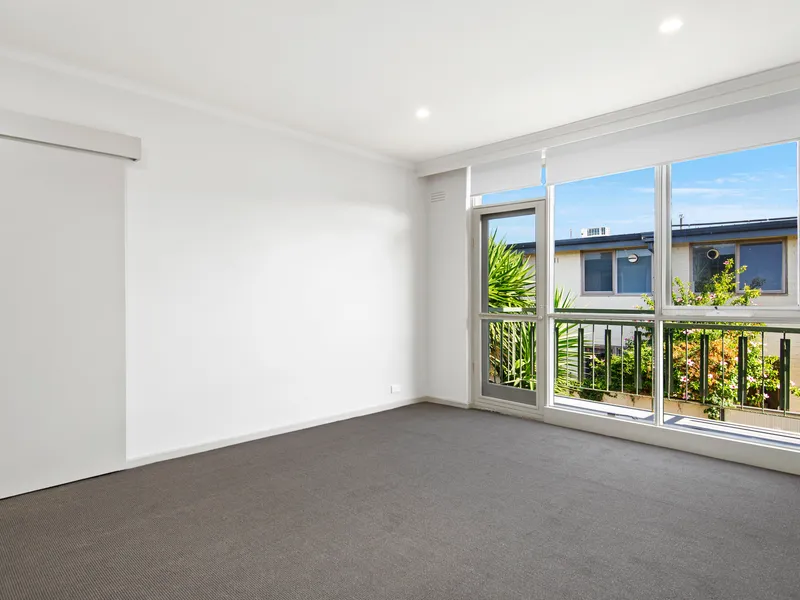 Two bedrooms both home BIR, the master additionally with a contemporary ensuite and direct balcony access. Further features include a split system unit, video intercom access to building, timber floors, recessed lighting, ceiling fan, sprinkler system and an underground garage with a secure car space.
