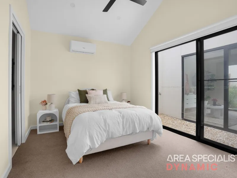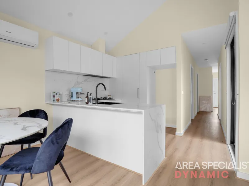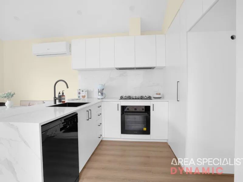 Comprising an open plan kitchen, living & dining area with floorboards, further leads to the low maintenance, synthetic grass courtyard. The kitchen offers ample storage space, pantry, breakfast counter, dish washer and gas cook top.