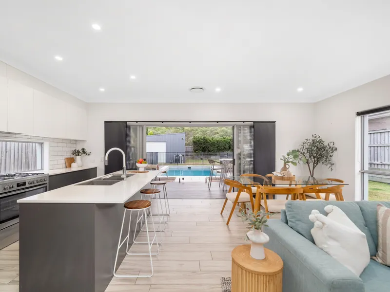 • Expansive open plan living and dining area flowing seamlessly to the outdoor entertaining area overlooking the inground pool