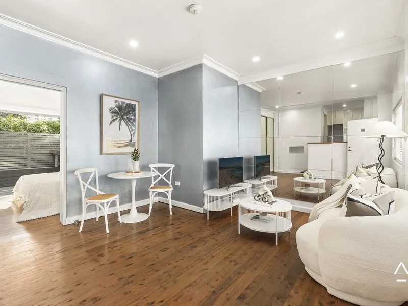 Anchored at the end of a cul-de-sac directly across the road from the lapping shores of Little Manly Beach, this bespoke one-bedroom apartment is simply brimming with extras. A leaf-screened entertainers' deck bathed in northeasterly sunshine complements an ample living and dining space, a sleek contemporary kitchen and bathroom, plus a spectacular internally accessed retreat or storage area on title. Nestled towards the rear of a boutique building of 10 with minimal access stairs, its whisper-quiet setting is only a few barefoot steps to the beach, harbour pool, boat ramp and Ripples Café, and a short stroll to Manly's city ferry terminal, cosmopolitan eateries and world-famous ocean beach.
