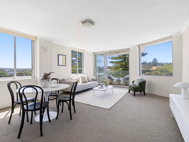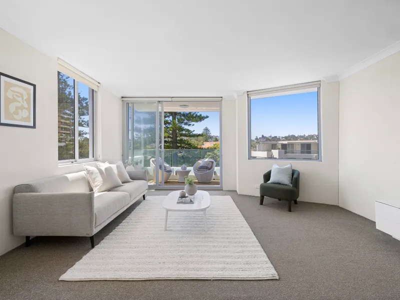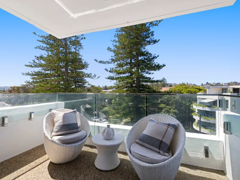 • Set on the first floor with lift access, this apartment boasts ocean outlooks from every room and a main balcony facing Manly Beach.