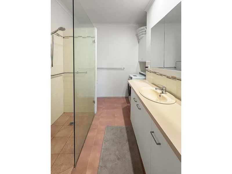 For practicality, the home includes a combined bathroom and laundry with a walk-in shower, along with the added convenience of a separate toilet.