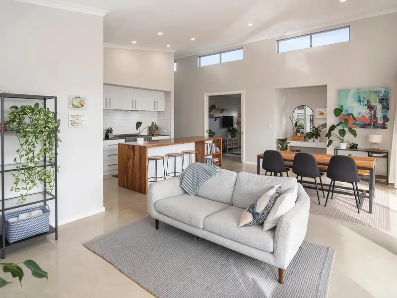 - Open plan kitchen, dining and living with high ceilings
