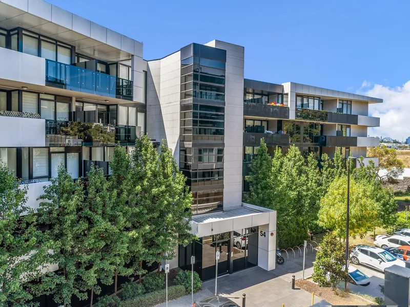 Positioned in a modern complex directly opposite parklands, this light filled two bedroom apartment offers elevated views, contemporary finishes and effortless lifestyle convenience in the heart of Maribyrnong.