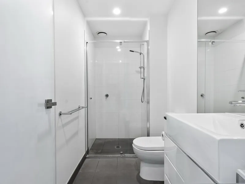Both bedrooms are well sized with built in robes, while the central bathroom features quality fittings, a large shower and a contemporary design.