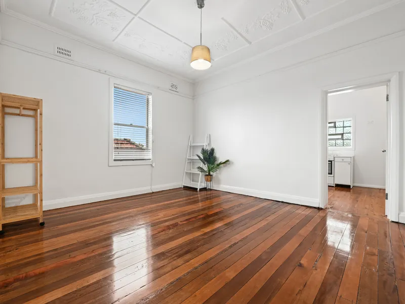 This spacious studio is positioned in one of Marrickville’s most vibrant and sought-after streets. Set within a classic building, the property showcases beautiful original features including high ornate ceilings and polished timber floorboards, creating a warm and inviting living environment.