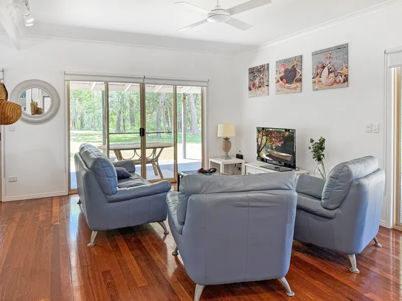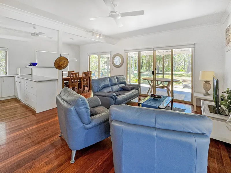 The home features a generous living area complete with air conditioning, providing year-round comfort, while the functional kitchen includes ample storage and a pantry to make everyday living easy.