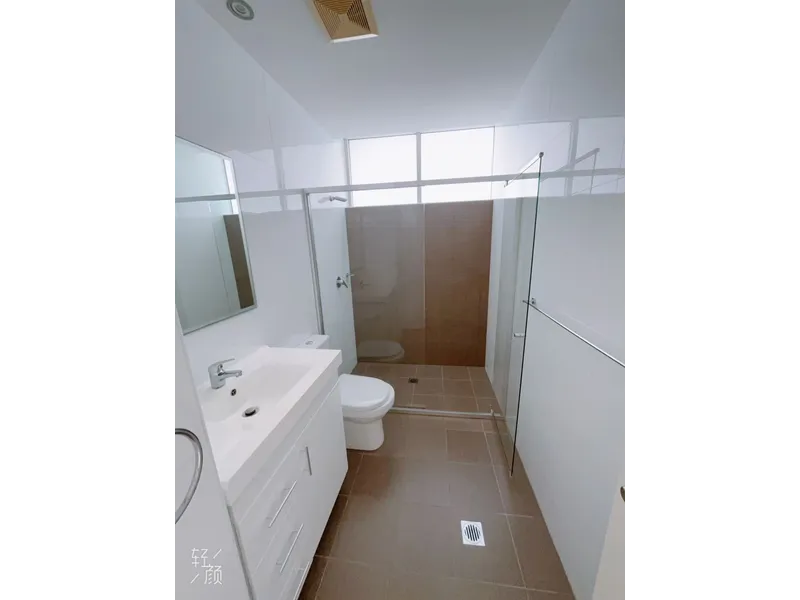 • Elegant bathrooms featuring glass shower screens, downlights, and mirrored shaving cabinets.