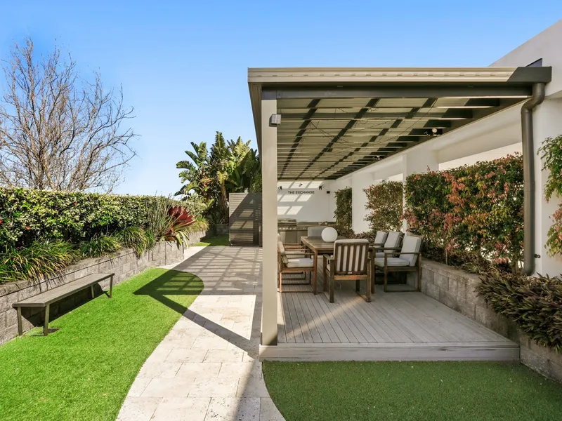 Open-plan living, dining and kitchen flow to an entertaining courtyard