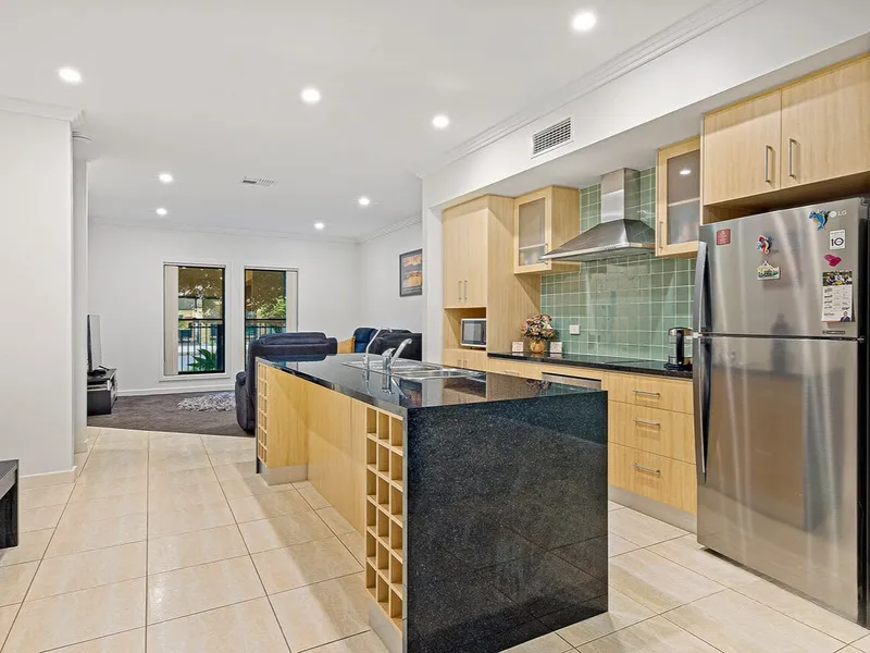 Step inside to find a light-filled open-plan layout, featuring a spacious living and dining area that flows effortlessly into a sleek, well-appointed kitchen complete with quality appliances, ample storage, and elegant countertops-perfect for both everyday living and entertaining.