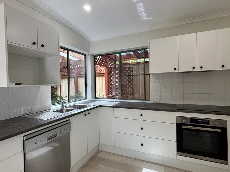 - Modernised kitchen with sleek stone benchtops and dishwasher