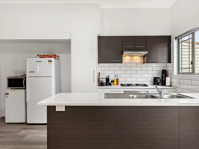 Timber flooring throughout the open-plan living area is low maintenance, and the neural colour scheme will appeal to everyone.