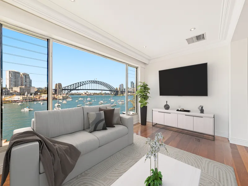 Offering premium seating to the best show in town, this attached Torrens Title harbourside haven captures iconic intimate views of the Harbour Bridge, Opera House, Luna Park and cityscape.