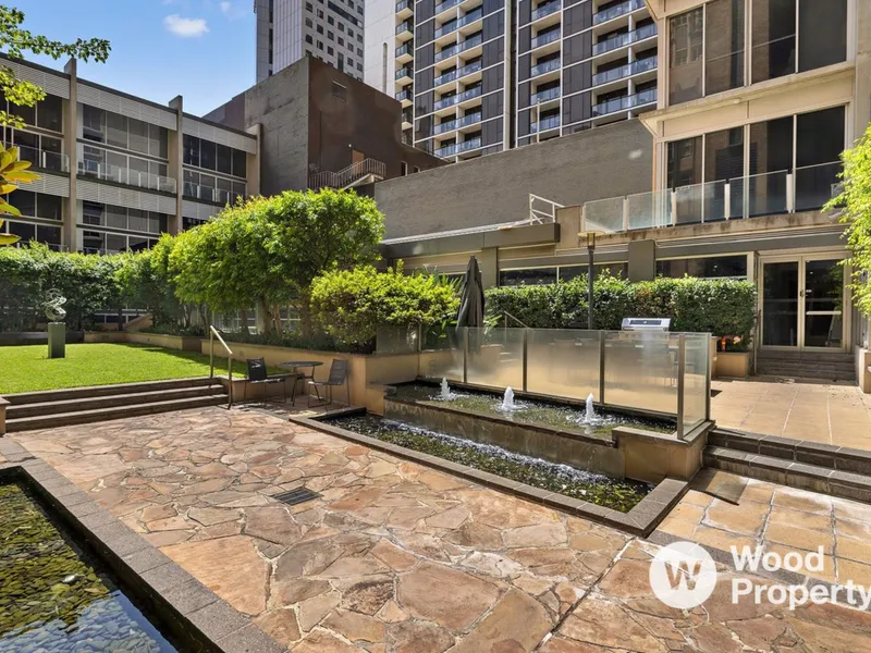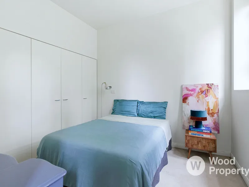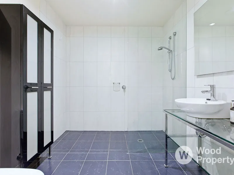 The apartment features a light-filled living area with soaring high ceilings and large windows, a well-appointed kitchen, and a spacious bedroom with high ceilings, large windows and built-in storage. The bathroom is updated and spacious while the inclusion of a secure standard car space is a rare and highly sought-after feature in the CBD. In addition, the 24 hour Concierge and swipe-only access offer a feeling of security, plus the personal touch of Concierge receiving deliveries for residents.