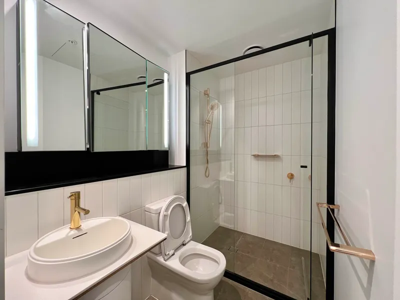 Situated in a landmark high-rise tower in Melbourne CBD, this north-facing apartment on the 57th floor boasts sweeping city skyline views, abundant natural light, and modern luxury throughout.