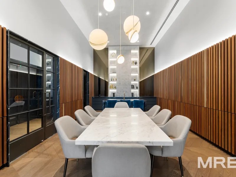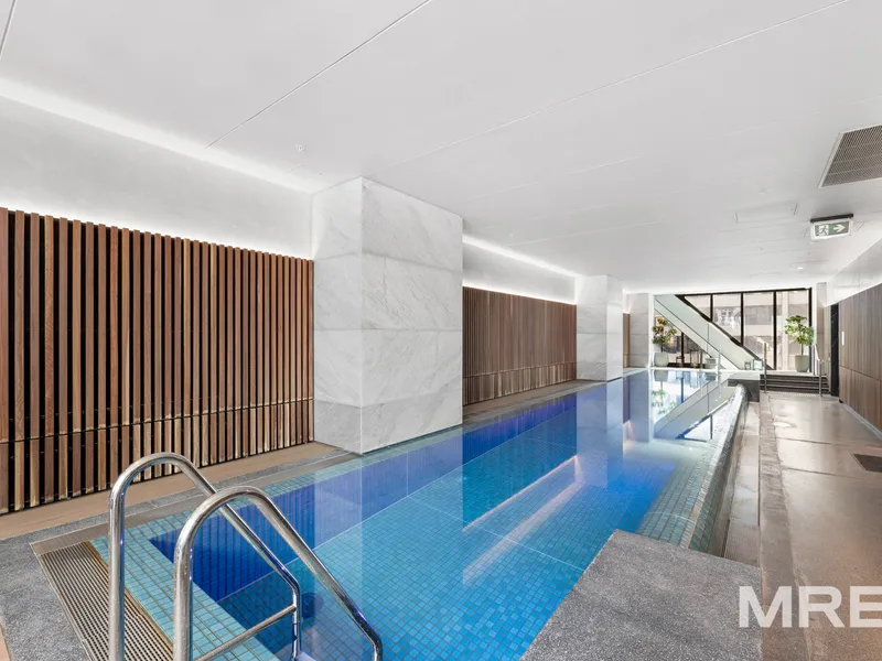 Residents enjoy access to premium resort-style amenities including an indoor swimming pool, fully equipped gym, sauna, theatre room, library and private resident dining areas.