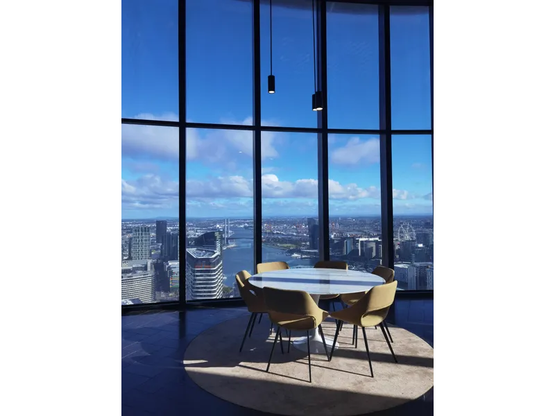 Ever changing Melbourne weather is a change of mood for this Apartment with magnificent views over Docklands harbour on the 73rd floor from the full-length windows of the living and bedroom.