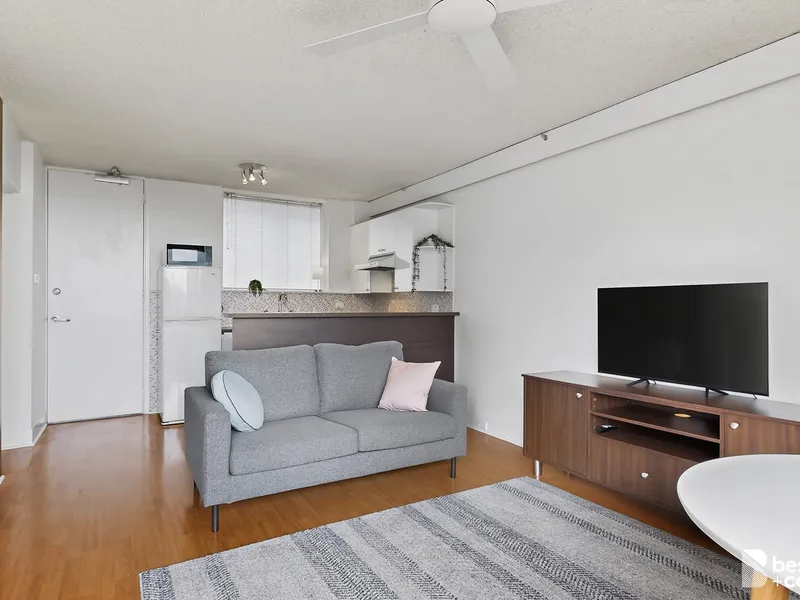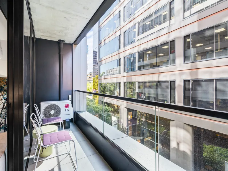 Located at 555 St Kilda Road, this modern residence features a spacious open-plan living area with floor-to-ceiling windows, allowing for plenty of natural light. The sleek kitchen is fitted with high-end appliances, stone benchtops, and ample storage, making it ideal for those who enjoy cooking. The generously sized bedroom includes built-in robes, while the contemporary bathroom boasts premium finishes and a large walk-in shower. A private balcony provides a relaxing space to unwind, and a split system air conditioning ensures year-round comfort. A European laundry is also included for added convenience.