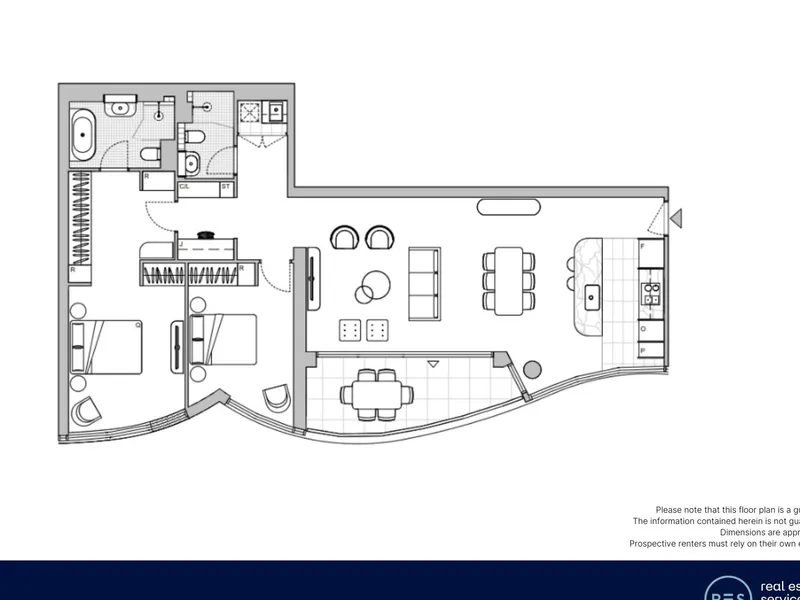 Featuring floor to ceiling windows to take advantage of the sensational views, this contemporary 1 bedroom, 1 bathroom furnished apartment features: