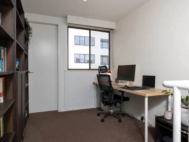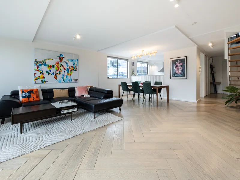 As you enter the spacious foyer, you will be amazed by the generous proportions, floor to ceiling windows with north-facing, panoramic City views on both levels, and premium finishes throughout. The lower level boasts a vast open-plan living and dining area that flows seamlessly to a private balcony - perfect for relaxing or entertaining - alongside a generously proportioned kitchen with stone benchtops, high-end appliances, and ample storage - all created to meet the needs of both: lovers of a quick meal and the most demanding gourmands.