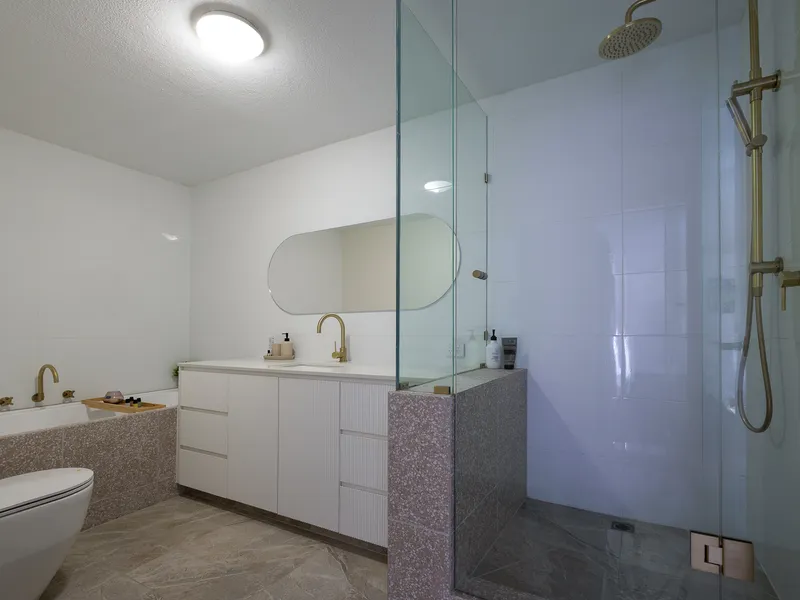 Quality European, herringbone timber floors feature throughout the living areas, carpeted sleeping areas, designer tiled wet zones, all create a warm and inviting space, with comfort, style, and functionality.