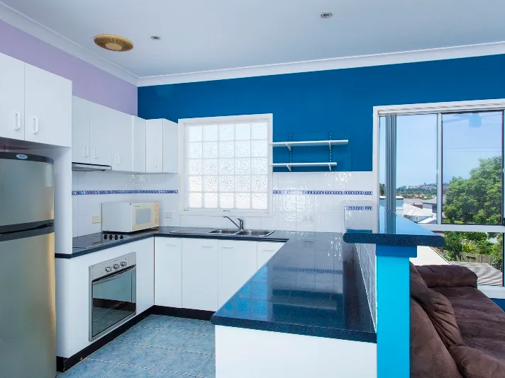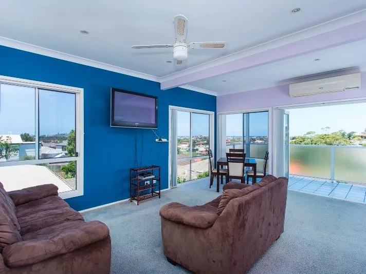 The sunny open plan living, dining, kitchen area creates a light filled living space, with great ocean views for you to enjoy. It includes sofas, a dining setting and a flat screen TV with DVD player and Foxtel.