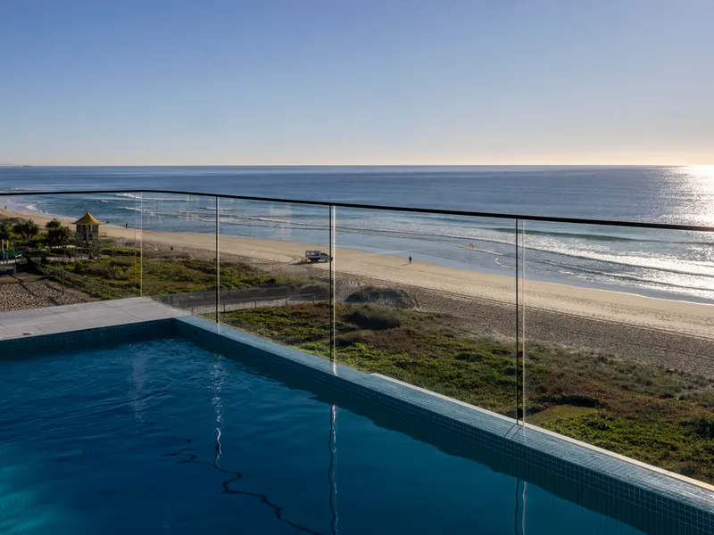 Directly fronting the golden sands of Mermaid Beach with 13.7 metres of uninterrupted beach frontage, the residence spans an impressive 803m², blending timeless elegance with low-maintenance coastal sophistication.