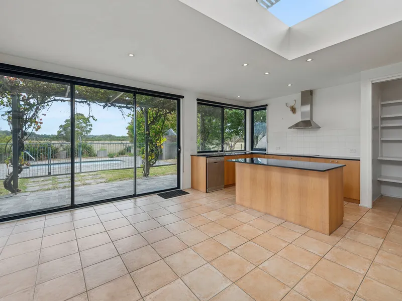 Designed for relaxed seaside living, the home features a generous open-plan living, dining, and family zone, complemented by a well-appointed kitchen and polished timber floors throughout. Large sliding doors open seamlessly to a paved courtyard, creating the perfect setting for effortless indoor–outdoor entertaining.