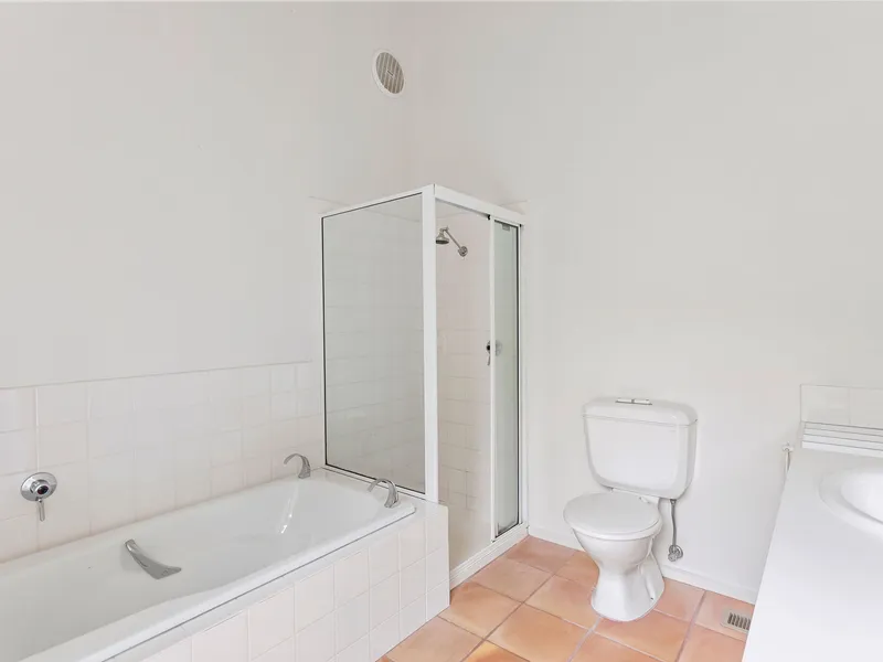 The spacious master bedroom includes a walk-in robe and private ensuite, while two additional double bedrooms are serviced by a central bathroom and separate laundry, making it ideal for families or those seeking a flexible beachside retreat.