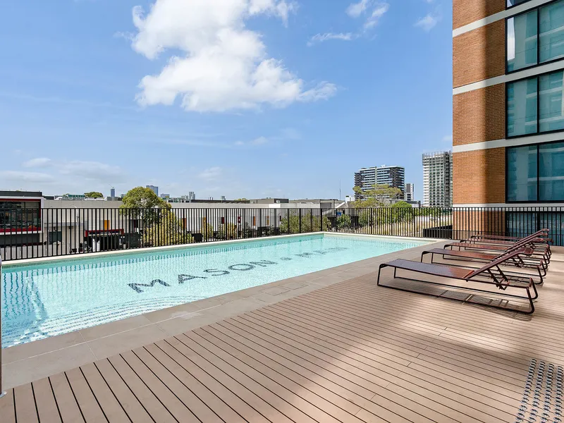Featuring timber flooring, an open-plan layout and ducted air conditioning, it is ideally suited to professionals seeking comfort, convenience and easy access to transport and local services. Spacious bedroom with built-in wardrobe Open-plan living and dining area with timber flooring Well-appointed kitchen with gas cooking, dishwasher and ample storage Neat bathroom with modern finishes Ducted air conditioning throughout Internal laundry Storage with internal access Intercom security and additional storage cage Residents enjoy access to resort-style facilities including a swimming pool and gym, with retail shops and cafés conveniently located on the ground level of the complex.