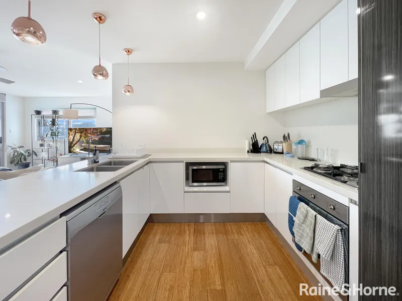 • Modern kitchen with gas cooktop, oven, dishwasher and ample bench and cupboard space