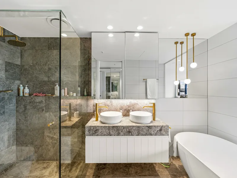 Every detail exudes opulence, from the beautiful engineered oak flooring to the luxurious natural stone benchtops and fully integrated Miele appliances in the kitchen. Enjoy the convenience of a gas cooktop and Liebherr double fridge/freezer combination, creating a culinary haven for the discerning resident.