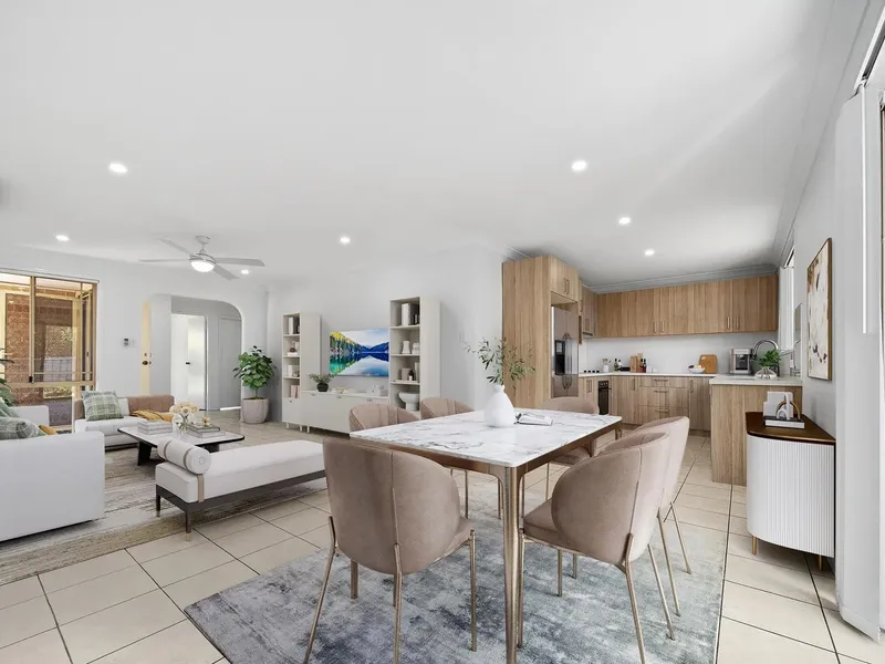 • Open-plan living and dining area filled with natural light