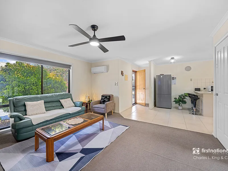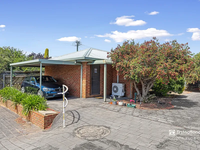 Positioned in a quiet and well-maintained complex, this solid brick unit offers low-maintenance living with comfort, convenience and privacy. The home features a light-filled open-plan kitchen, meals and living area with a large front window, while the kitchen provides excellent bench space, electric cooking, ample cabinetry and a convenient breakfast bar. The two generous bedrooms include built in robes and are serviced by a central bathroom with a separate toilet. A full laundry with direct access to the backyard adds everyday practicality, and year-round comfort is ensured with a ceiling fan and split-system heating and cooling.