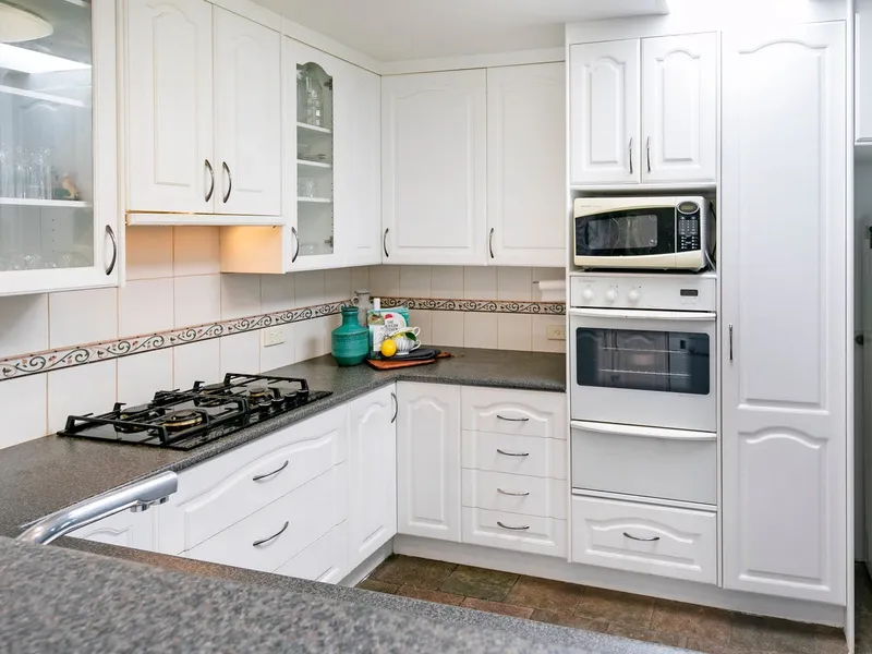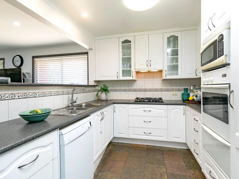 - Modern kitchen with gas stove top, oven, dishwasher, pantry and plenty of cupboard space