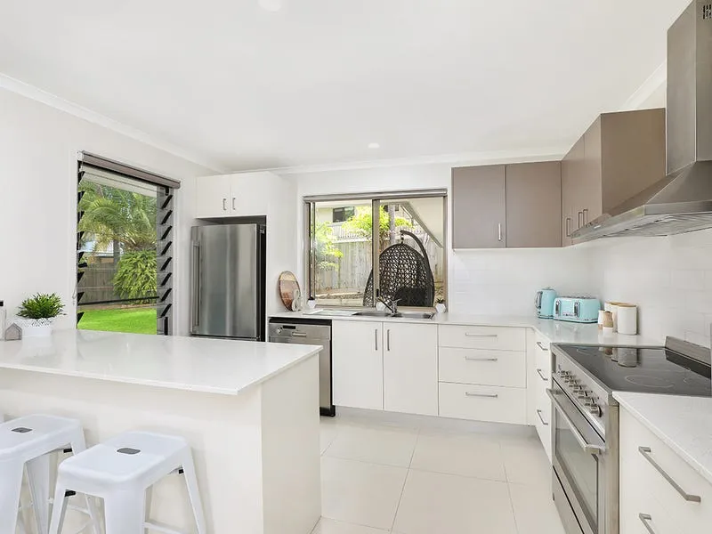 Inside, the home has been thoughtfully updated with a fresh white palette and contemporary finishes throughout. The well appointed kitchen forms the centrepiece of the home, seamlessly connecting to the open plan living and dining areas and flowing directly to the covered outdoor entertaining space. This layout creates a natural hub for everyday living and effortless entertaining.
