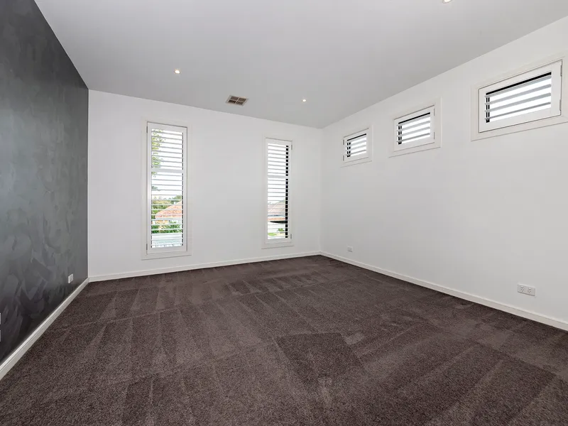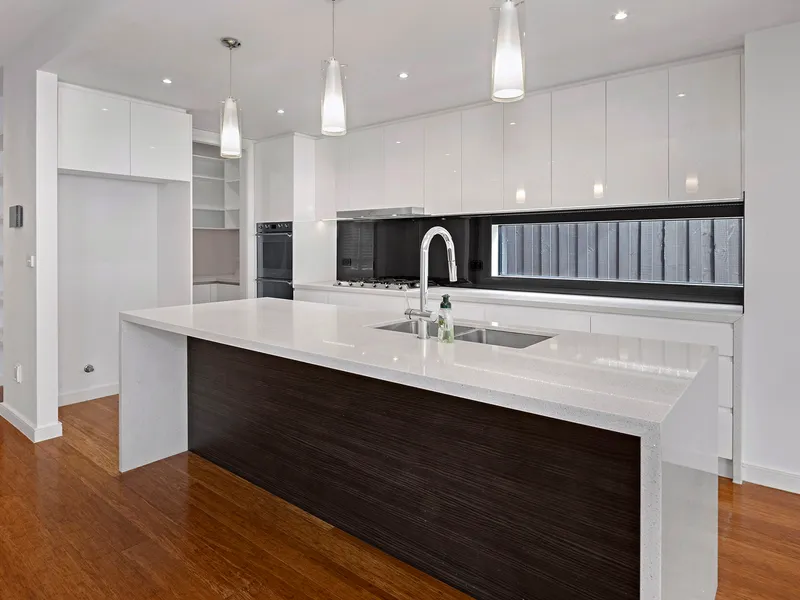 This stunning contemporary residence offers exceptional space, quality, and modern comfort across two beautifully designed levels. Featuring high ceilings, bamboo flooring, stone benchtops, porcelain tiles, and elegant Roman blinds, this home combines luxury with practical living.