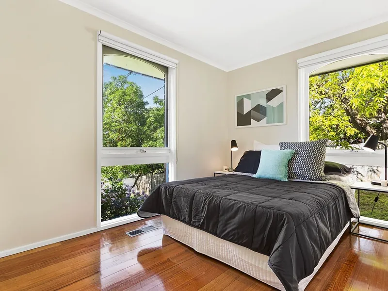 On a large block, this brick home features wooden floorboards throughout, a light-filled front living room,  roomy kitchen/meals with plenty of bench space, 900mm stainless steel gas cook top and oven, dishwasher, appliance cupboard and ample additional cupboard space