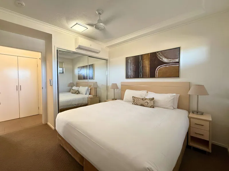 This modern 2-bedroom, 2-bathroom executive apartment provides a serene retreat with two tastefully furnished bedrooms, each meticulously designed to offer a seamless blend of style and comfort. Ensuring personalized comfort, both bedrooms are equipped with air conditioning and ceiling fans, allowing residents to adjust settings for a restful night's sleep or tranquil moments of relaxation. The thoughtful design of these spaces creates a welcoming ambiance that invites residents to unwind in luxury.