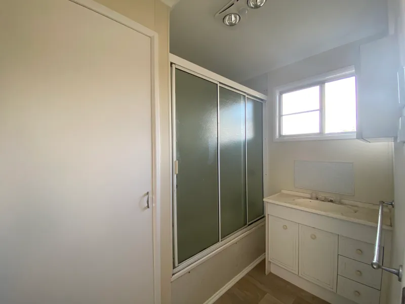 The home is complemented by a contemporary bathroom, and the living area is enhanced by a large split system air conditioning unit, ensuring a pleasant environment for everyone.