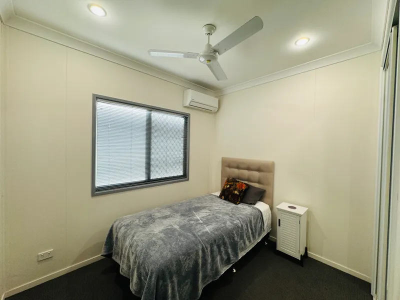 The property is equipped with split system air conditioning throughout for year-round comfort. The modern, fully tiled bathroom is complemented by a separate toilet, while the functional laundry includes a washing machine and dryer. Enjoy an enclosed courtyard with a water tank, a private driveway, and a double carport that provides versatile undercover space. Perfectly situated in a prime location, this home is conveniently close to all the amenities of the town, offering both comfort and convenience for your lifestyle.