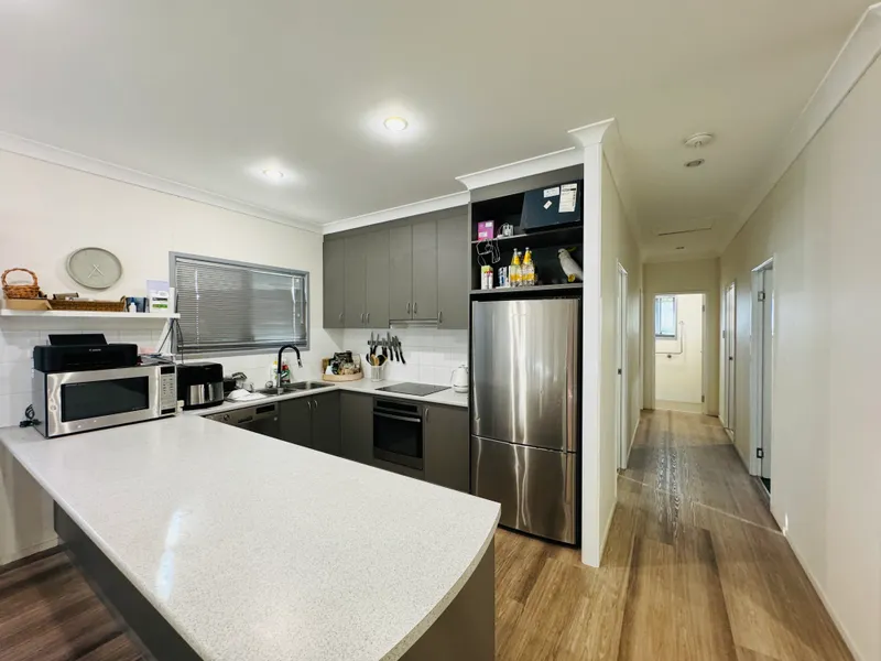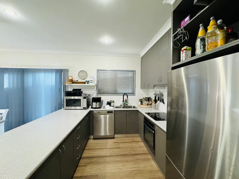 This spacious, fully furnished open-plan living space offers a modern, fully equipped kitchen with high-quality stainless steel appliances and a convenient dishwasher. The home features three generously sized bedrooms with queen-size beds, built-in robes, and all necessary linen, plus an additional bedroom with a king single. The master bedroom boasts a light-filled, tiled ensuite and a walk-in robe.