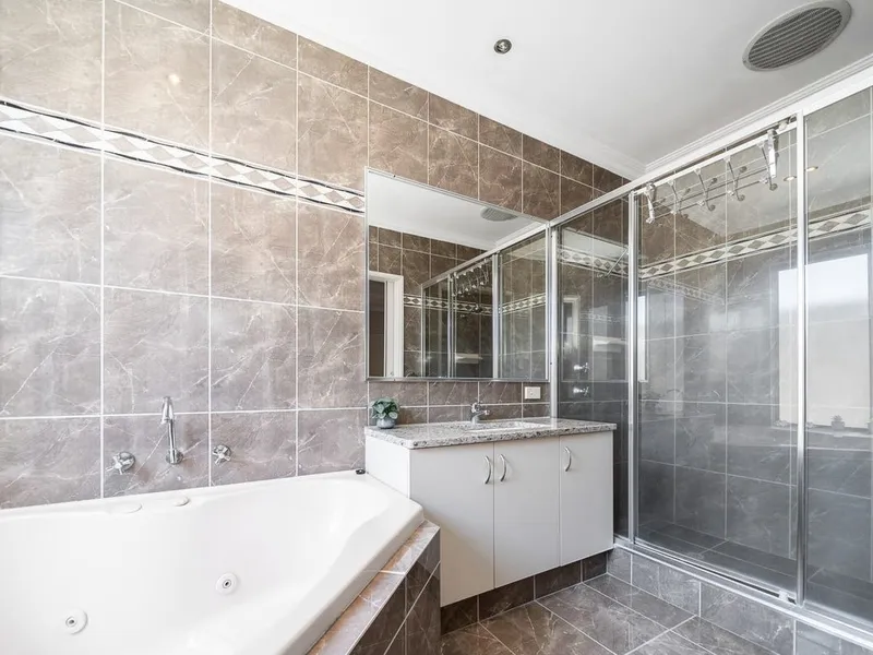 The master bedroom features an ensuite bathroom and a walk-in wardrobe, providing a private sanctuary for you to unwind after a long day. The two additional bedrooms are generously sized and share a well-appointed bathroom.